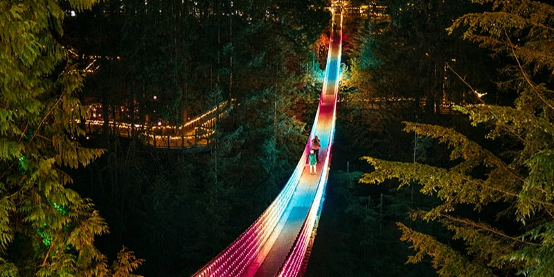 - Canyon Lights at Capilano Suspension Bridge Park: Walk among the treetops under twinkling lights and enjoy a magical forest experience.